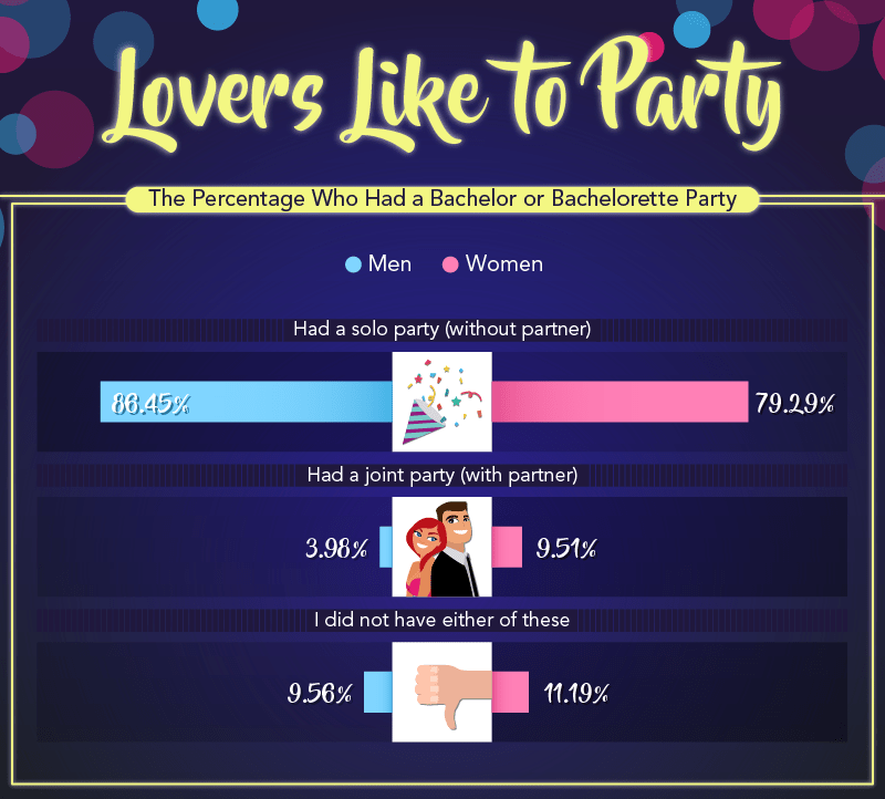 However, more than 11% of women and almost 10% of men reported they didn't indulge in any party before they said, "I do."